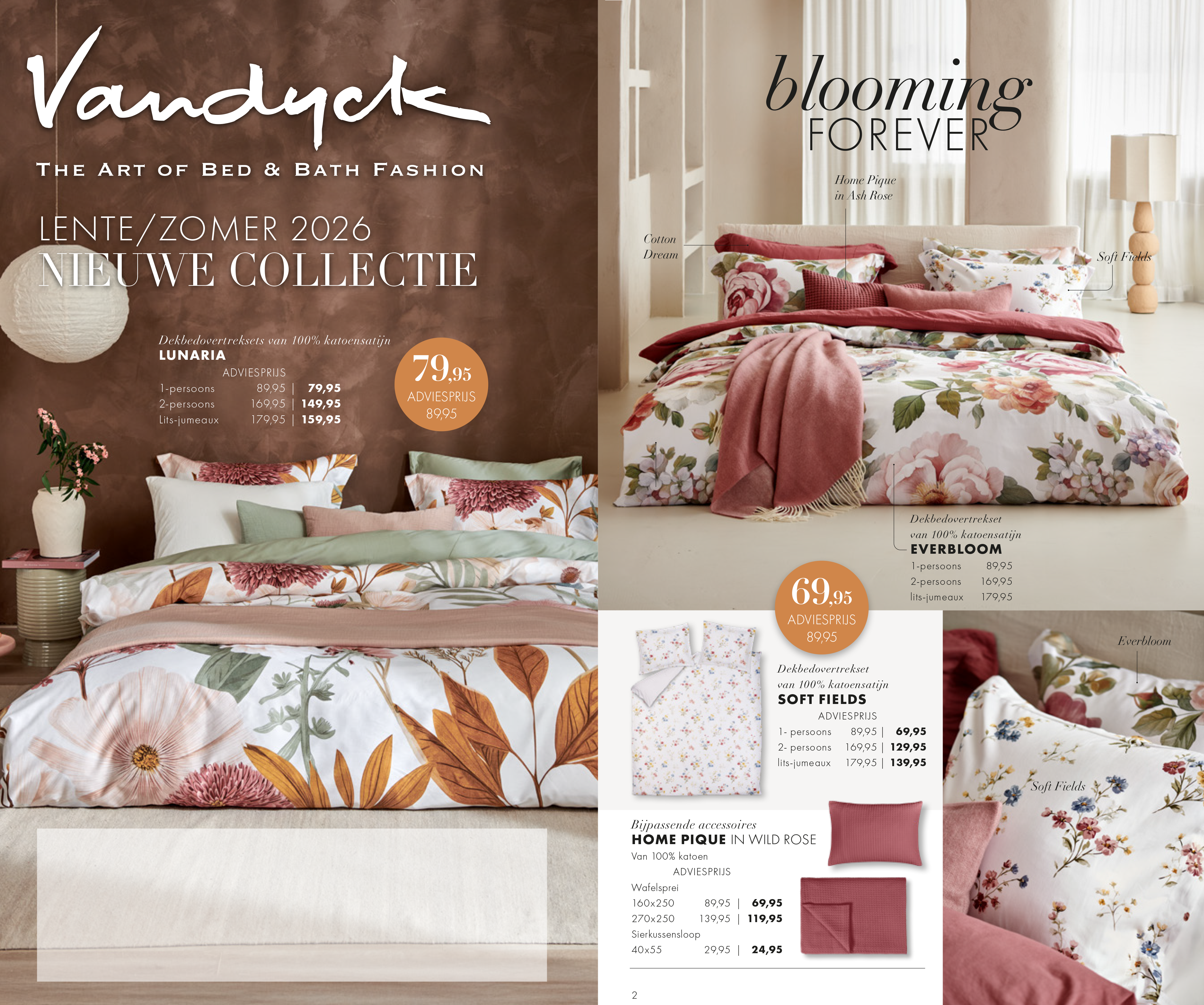 De bed- en badgoedcollecties van Vandyck wisselen per seizoen en volgen de trends op het gebied van wonen en slapen. Elk seizoen als de nieuwe collectie uitkomt verspreidt Vandyck een mooie folder, waarin een impressie staat van het prachtige aanbod. En denk daarbij niet alleen aan een mooi dekbedovertrek, maar ook aan heerlijk zachte handdoeken en kleurrijke badjassen.